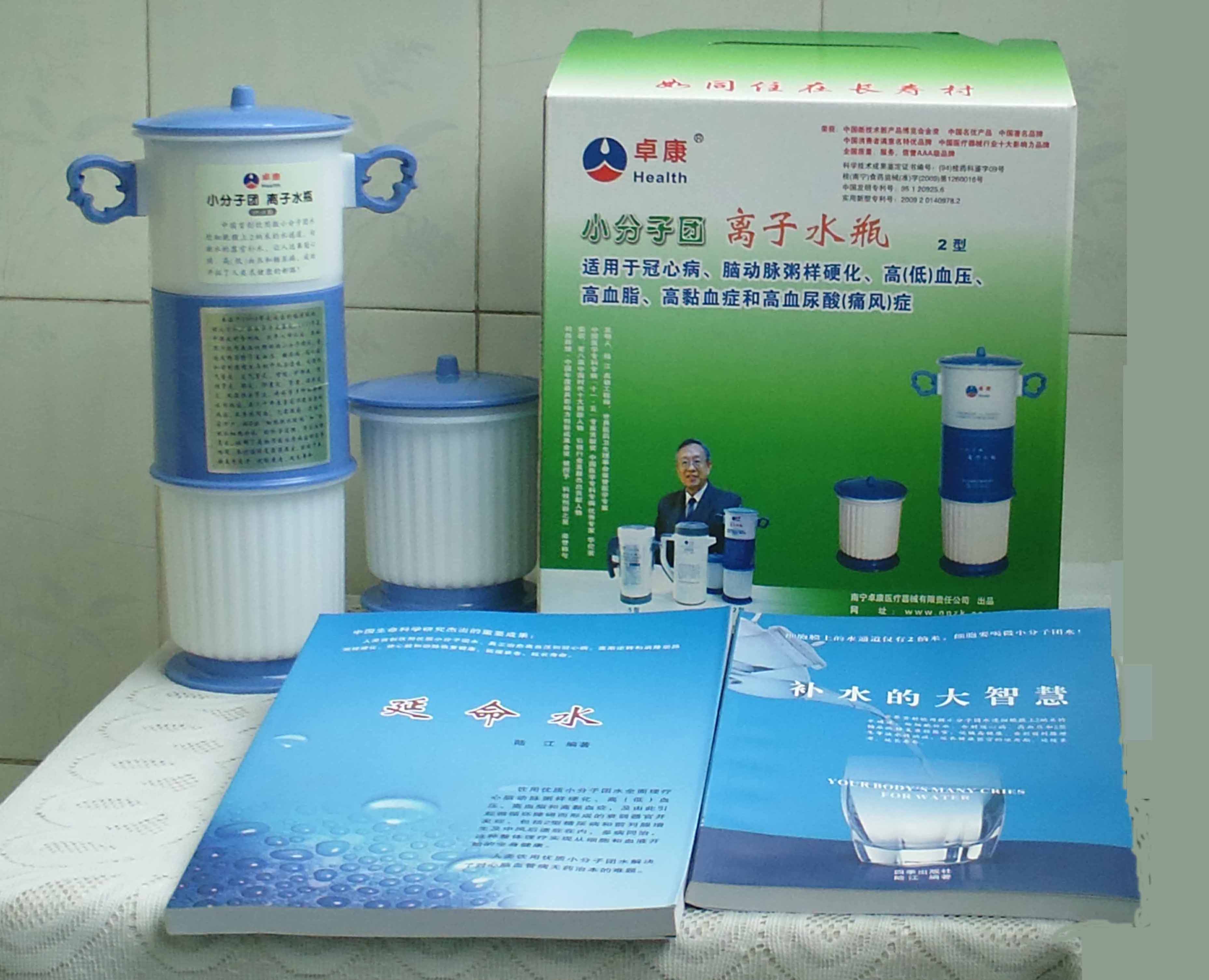 -----我是從事建筑的高工,本來沒有資格去攻克醫(yī)學難題,卻為了自身健康才扣響醫(yī)學的大門。由于我1990年患高血壓,因怕中風才研究發(fā)明了離子水瓶,我把水處理成微小分子團水,飲用后治愈了高血壓。便于1993年底送到三家省級醫(yī)院做臨床試用4個月。經(jīng)北京和廣西醫(yī)學專家鑒定:"降脂降壓效果好"," 能擴大心腦動脈流量,改善心腦電圖以及微循環(huán)","對治療心腦動脈粥樣硬化、高血壓、高血脂有良好的醫(yī)療保健作用。""產(chǎn)品的技術性能和療效達到了同類產(chǎn)品的國內領先水平,經(jīng)廣西醫(yī)學科學情報研究所檢索,未見國外有類似報道。"中國醫(yī)學科學院張正國教授從美國國立醫(yī)學圖書館數(shù)據(jù)庫存Medline檢索英俄文資料,均未見類似報告。2000年上市后,我為了對消費者負責而繼續(xù)觀察研究,一直通過《信譽卡》和《質量跟蹤調查書》向患者承諾療效,請用戶使用6個月后反饋效果。和脂壓患者飲用2至5個月內,消除癥狀,停服藥物,血壓正常;冠心病患者飲用3~5個月逐漸減輕至消除心絞痛、房顫等癥狀,不再服藥,飲用1年左右心電圖正常,經(jīng)冠脈造影掃描無明顯狹窄,表明冠心病痊愈。大量患者還反映許多衰弱器官被修復,讓前列腺增生、慢性咽喉炎、慢性氣管炎、支氣管炎、慢性胃炎、腸炎和膽囊炎等不藥而愈;2型糖尿病患者是因為胰島衰弱致病,飲用該水半年至一年,逐漸減藥至停藥,血糖尿糖正常,真正治愈2型糖尿病。中風后遺癥患者飲用六七個月,可逐漸減輕至消除肢體和語言障礙,表明飲用該水能讓壽命很長的神經(jīng)元細胞逐漸修復,奇跡般地恢復肢體和語言功能。飲用后還使胸腺和脾臟兩個重要的免疫器官被修復和增強,產(chǎn)生免疫細胞多,提高了免疫力,使人不生病或少生病。自此, 飲用微小分子團水創(chuàng)造了攻克冠心病、高(低)血壓和糖尿病三大醫(yī)學難題的奇跡。人們對此感到不可思議,但實踐是檢驗真理的唯一標準。
